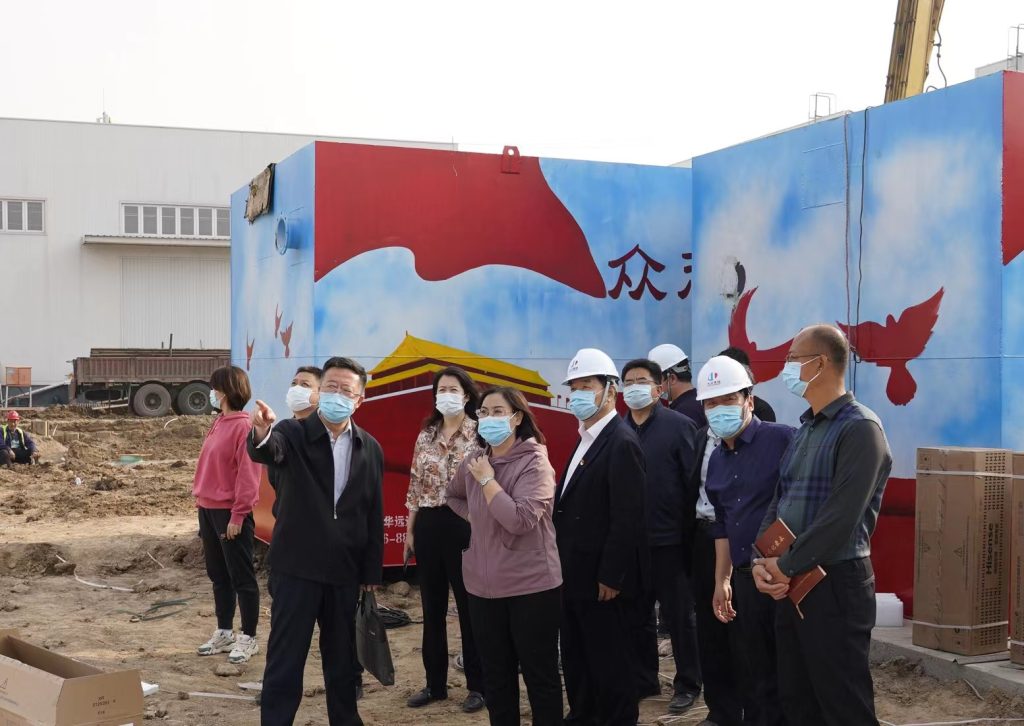 4月9日下午,沧州市副市长王晓玲,沧州市卫健委党组书记张智勇、主任王永梅视察方舱医院建设情况,星空体育·星空官方网站-星空体育(中国)党委书记、董事局主席李建国,大元建业集团董事长、CEO王连兴陪同。实地视察了方舱医院施工现场的有关情况,了解项目整体情况及建设进度。