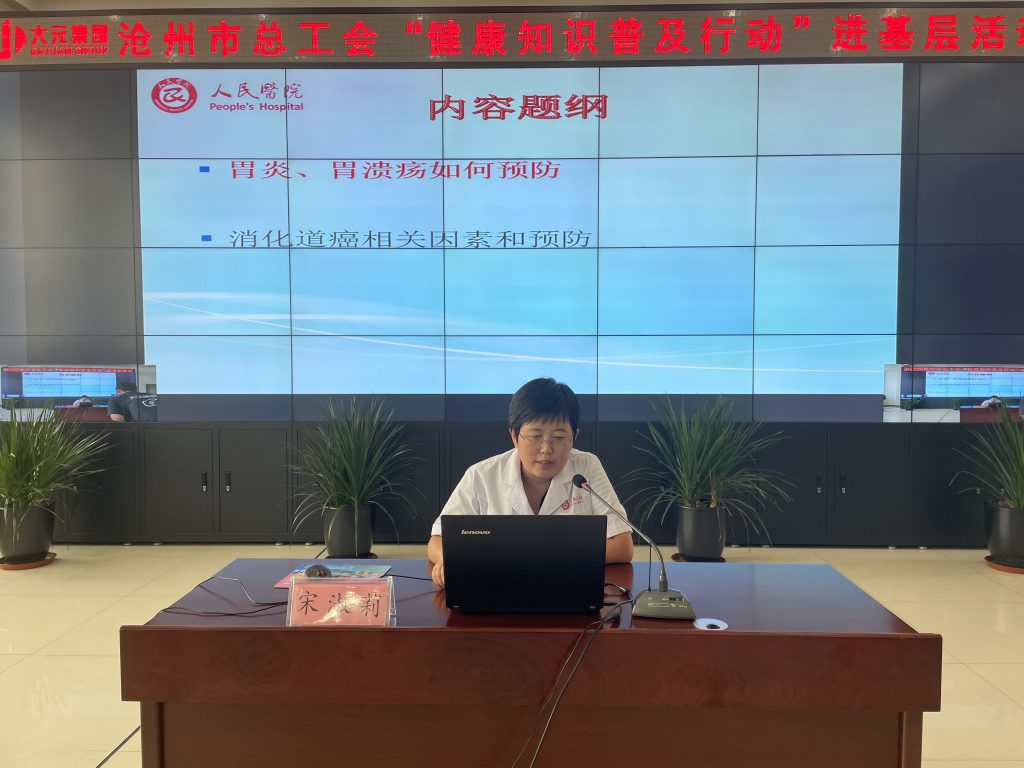 活动伊始,张总首先对人民医院各位专家的到来表示感谢。认为,健康好比数字1,其它后面的都是0;有了1,后面的0越多就越富有,反之,没有1则一切皆无。表示,举办“健康知识普及行动进基层”活动,是市总工会与沧州市人民医院对广大干部职工健康状况的关心,希望通过本次活动,各位专家为员工传经送宝,使大家听懂弄懂并应用到日常生活中,增强大家自我保健意识,由被动健康管理转变为主动健康管理。