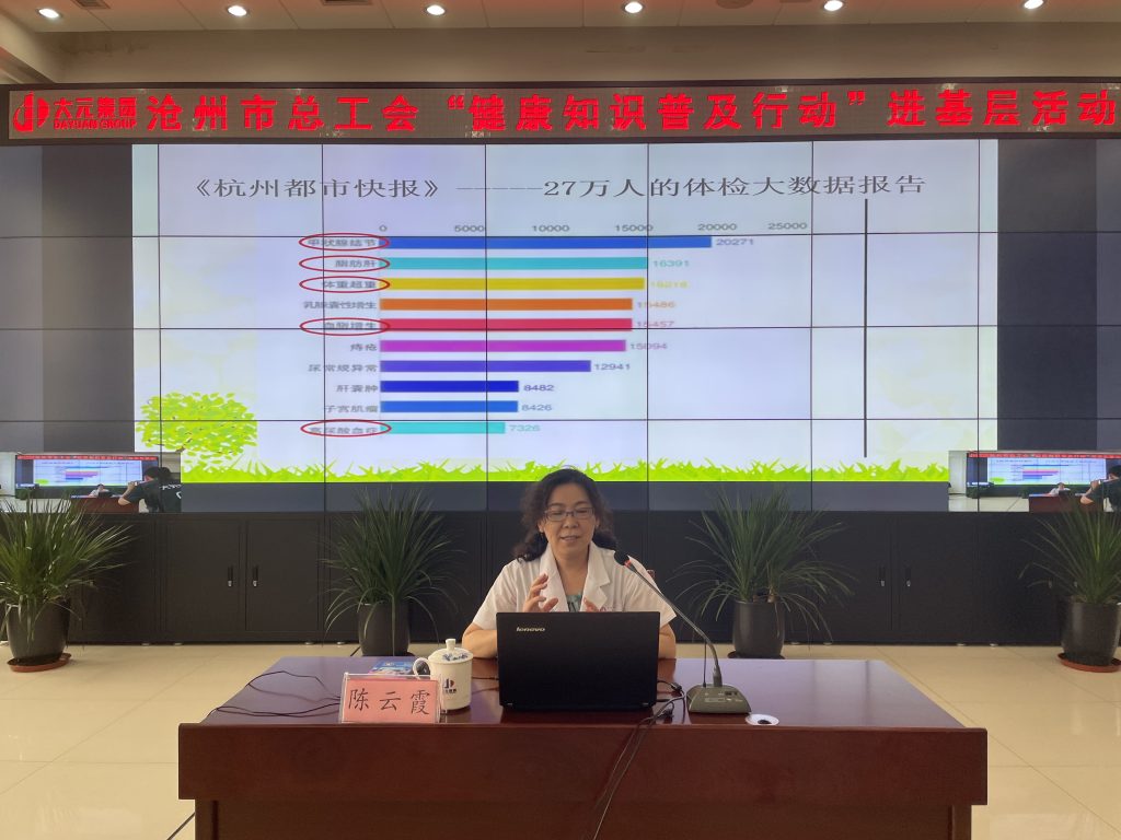 为进一步贯彻落实党中央、国务院健康中国行文件精神,充分发挥星空体育·星空官方网站-星空体育(中国)职工健康生活室为职工健康保驾护航的作用,扎实推进关爱职工暖心工程建设,提高广大职工自我健康管理意识,8月12日下午,沧州市人民医院健康管理中心主任李德鹏、内分泌科主任,教授,硕士生导师陈云霞、消化一科主任宋淑莉莅临星空体育·星空官方网站-星空体育(中国)开展“健康知识普及行动进基层”活动。星空体育·星空官方网站-星空体育(中国)副总裁、工会主席张春荣、大元建业集团董事长、CEO助理王浩、集团总部党支部书记、党群文化中心总监王金英热情接待。集团总部机关全体人员现场参会。