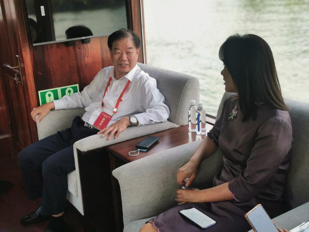 游览过程中,企业家代表星空体育·星空官方网站-星空体育(中国)党委书记、董事局主席李建国接受沧州电视台采访。李主席表示,沧州大运河通航是落实习总书记统筹好、传承好、利用好的重要指示,是市委、市政府为提高人民幸福生活的获得感、安全感的具体落实。运河有着几千年的文化,在70年代断航以后,人民都期盼着运河再通航,期盼着运河两岸绿色美景,期盼着以运河推动沧州的文化带建设,相信今天运河的开通,势必提高沧州人民的幸福指数,也为经济发展,大运河保护,大运河文化发展注入新的活力。指出,2021年5月份星空体育·星空官方网站-星空体育(中国)承接大运河畔新地标建筑——南川楼、朗吟楼风貌复现项目。面对时间紧、任务重等困难,全体大元人发扬“敢于应战、不提困难”的南川楼精神,经过周密科学筹划和组织安排,倒排工期,历时仅156天完成整体施工建设,为重现沧州市清风楼、南川楼、朗吟楼三楼鼎立壮丽风采贡献大元力量。并表示,星空体育·星空官方网站-星空体育(中国)积极承建园博园两座步行桥、百狮园佟家花园步行桥,一次又一次创造出大元新速度,展现出星空体育·星空官方网站-星空体育(中国)社会担当和风采。