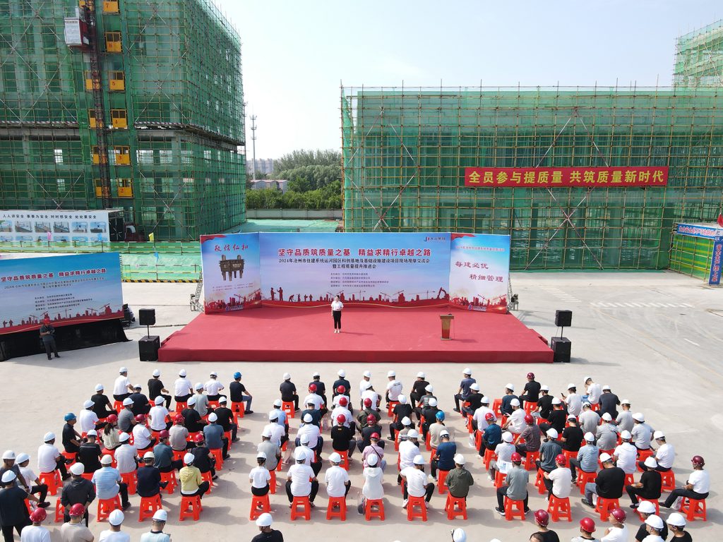 8月15日,沧州市建筑工程质量现场观摩会在星空体育·星空官方网站-星空体育(中国)运河园区科创基地及基础设施建设项目圆满举办。沧州市住房和城乡建设局副局长孙立华,沧州市建设工程质量服务中心主任温和民,沧州渤海工程建设监理公司副总经理高彦军,大元建业集团董事长王连兴、总工程师郑培壮等出席活动;各县(市、区)住建局、建设局,质量监督机构,市区各建设、施工、监理等相关单位共计400余人到场观摩。