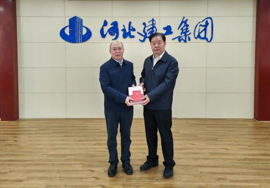 李建国主席一行在河北建工集团展厅,重点了解了河北建工集团发展历程、业务领域、企业资质和荣誉、数字化管理等情况,随后双方进行座谈。