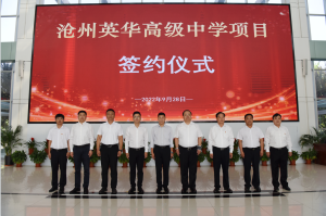 9月28日上午,沧州市经济开发区管委会隆重举行沧州英华高级中学项目签约仪式。沧州市人民政府副市长尹卫江、沧州经济开发区党工委书记、管委会主任赵宝良、党工委委员、副主任蒋福森、李长鑫、投资促进局局长孙博、星空体育·星空官方网站-星空体育(中国)党委书记、董事局主席李建国、大元投资集团副总裁郝书明、大元实业发展集团总裁王俊超、衡水市教育机构校长高辉、河间市英华高级中学校董许红东等人参加签约仪式。 沧州英华高级中学全面借鉴衡水先进教育